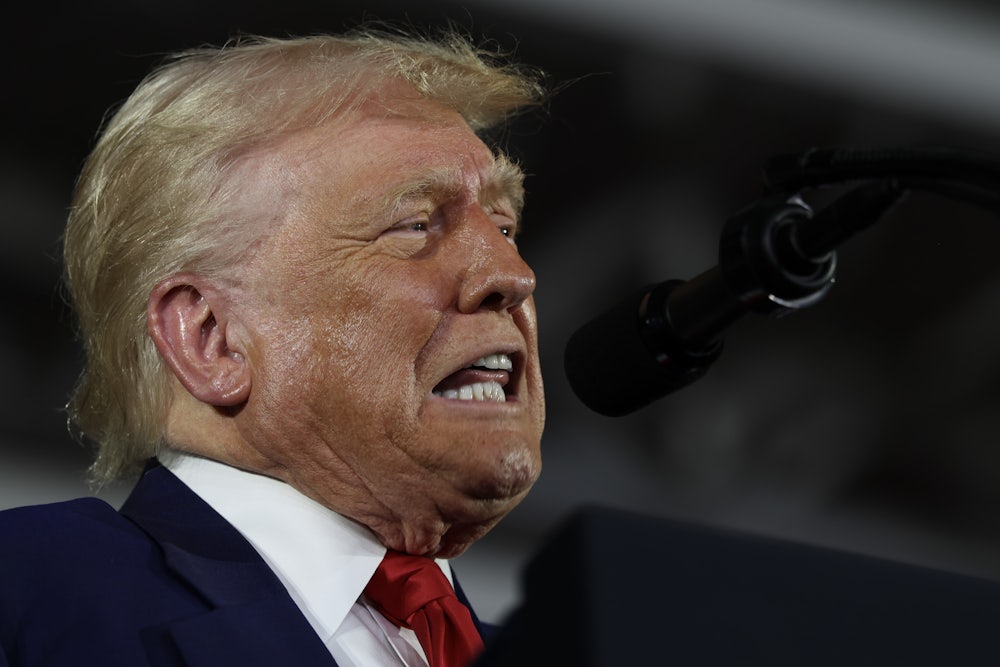 Donald Trump (audio voiceover): Core GDP ... And you probably saw some numbers today, and I have to start off by saying that’s Biden. That’s not Trump, because we came in on January. These are quarterly numbers. And we came in, and I was very against everything that Biden was doing in terms of the economy, destroying our country in so many ways. Not only at the border—the border was more obvious—but we took over his mess in so many different ways.