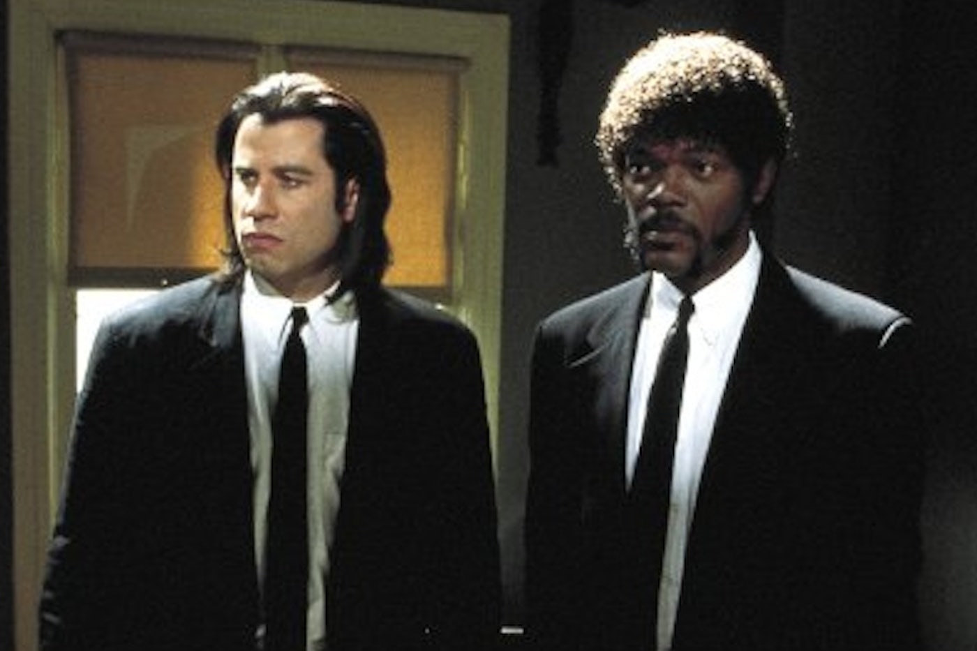 He interweaves three stories. The film opens in a diner. A pair of petty crooks, played by Amanda Plummer and Tim Roth, after some dejected conversation decide to change their luck by robbing the very diner in which they are sitting. Just as they pull their pistols, we shift to the second story. John Travolta and Samuel L. Jackson are hit men for a drug czar, on their way to a hit. They converse casually, like telephone repairmen on their way to a routine job. They arrive where they're headed and do their killing.