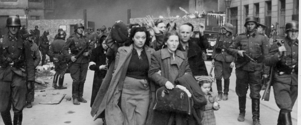 In 1940, Warsaw had a population of around 1.2 million people, its Jewish population swollen to almost one-third of that number by forced immigration. In the autumn of that year, the Jews of Warsaw were walled into a 3.5-square-mile area of buildings--30 percent of the city's population less than 3 percent of its space--where, in the next year and a half, 83,000 proceeded to die from hunger. In the summer of 1942, 300,000 Jews were taken away for murder, mostly at Treblinka. In April and May, 1943, the remaining Jews, perhaps 60,000 were killed, or captured and deported, in the Warsaw Ghetto Uprising, during which the Germans leveled that part of the city.