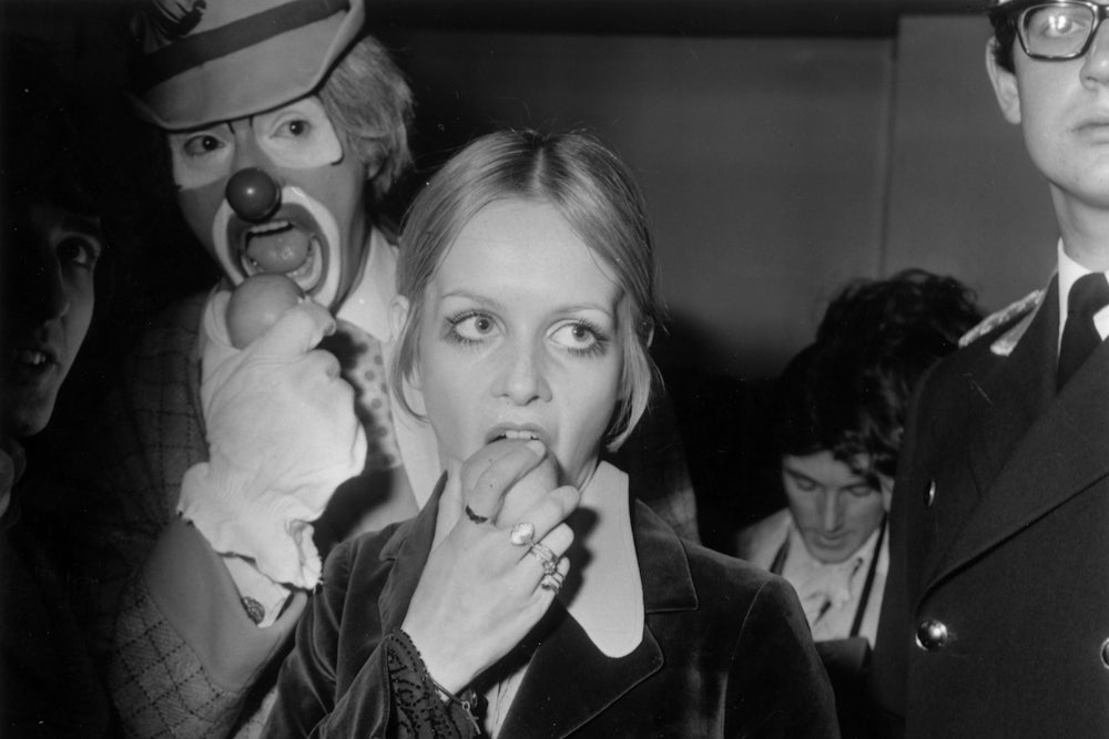 I’m left with a few questions: Did Twiggy finish that apple? Did she give it to that clown standing behind her? And why is there an entire category on Getty Images for “model eating” photos?