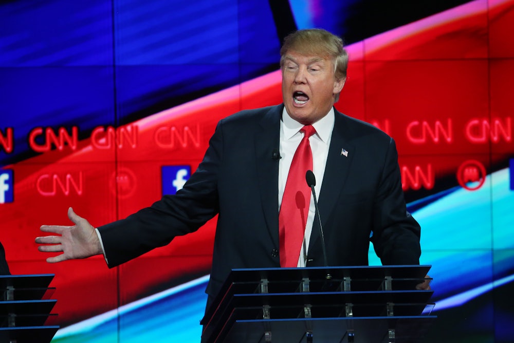 It’s hard to pin down where Trump stands on foreign policy. He veers from calling for the heads of women and children to pushing a more hands-off approach to the Middle East. He is in the latter mode in this portion from last night’s debate, which could have come from the mouth of Bernie Sanders: