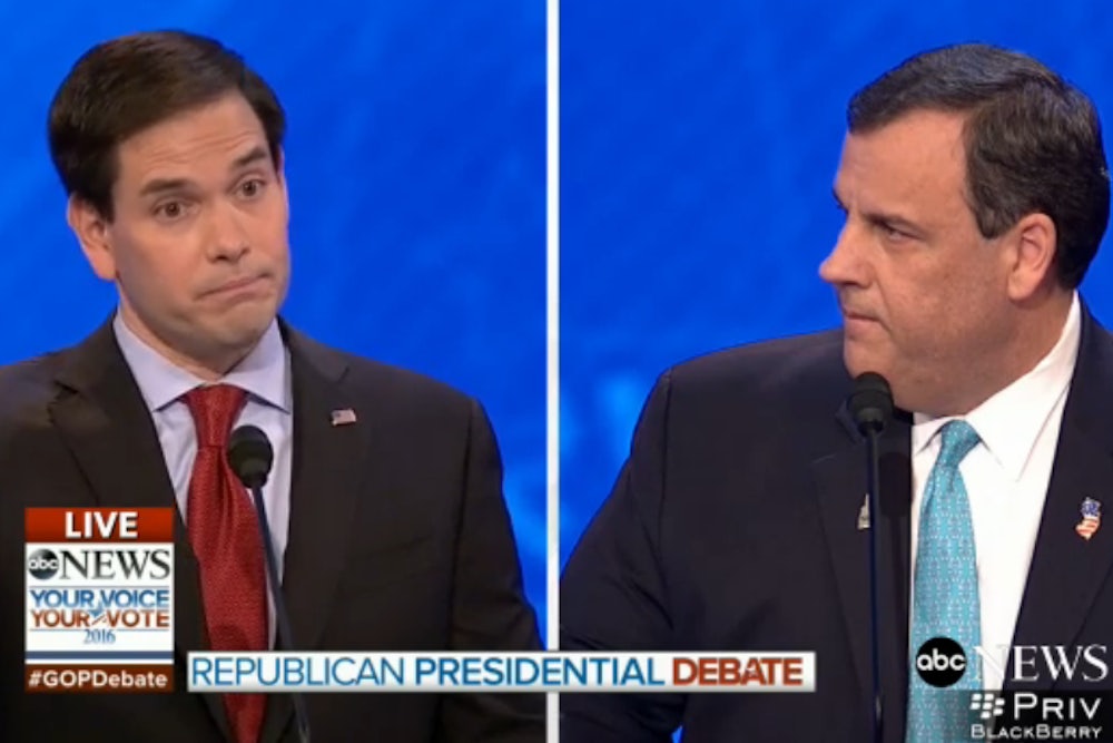 It was an obvious—and clumsy—pivot to a non sequitur talking point, and Christie wasn’t having any of it. “That’s not leadership, that’s truancy,” he said of Rubio’s Senate record.