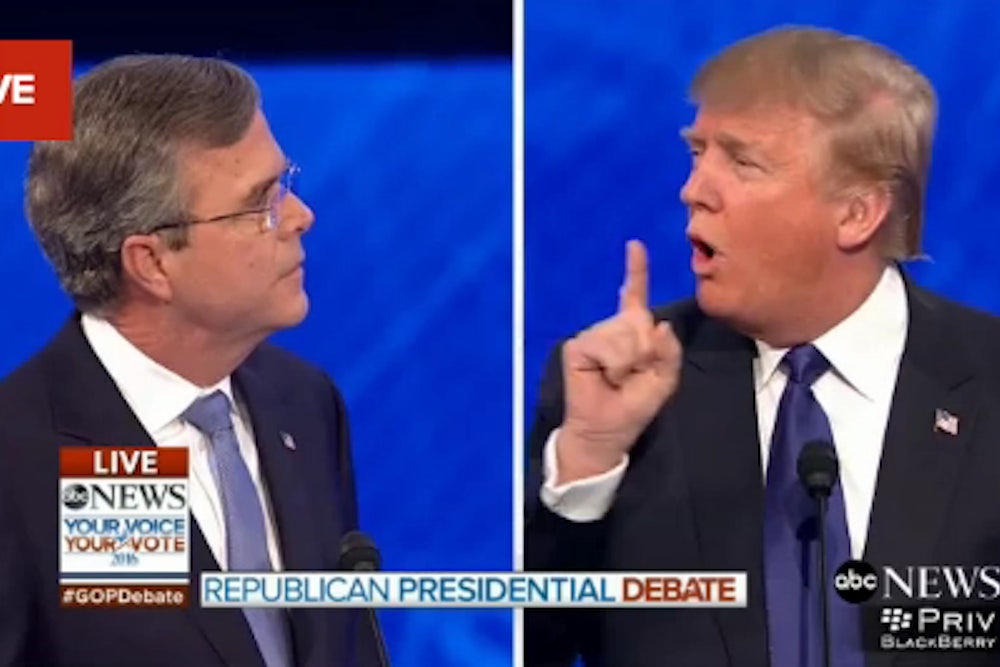 Like a true heel, Trump attacked the audience at the ABC debate, claiming it was packed with Republican hacks. (For those who are clueless about the WWE, a heel is the bad guy who is rude and crude and breaks the rules, who is mean to children and puppies, etc., and who many fans root for anyway.) After giving a surprisingly fluent defense of eminent domain, Trump mocked Jeb Bush for criticizing him: “He wants to be a tough guy.” Then he shushed Bush (“Quiet.”), and the audience booed. And here was Trump’s best performance as a heel since the first debate. “That’s all of his donors and special interests out there,” Trump said, waving his finger at the crowd. They booed more. “That’s what it is,” he shrugged.