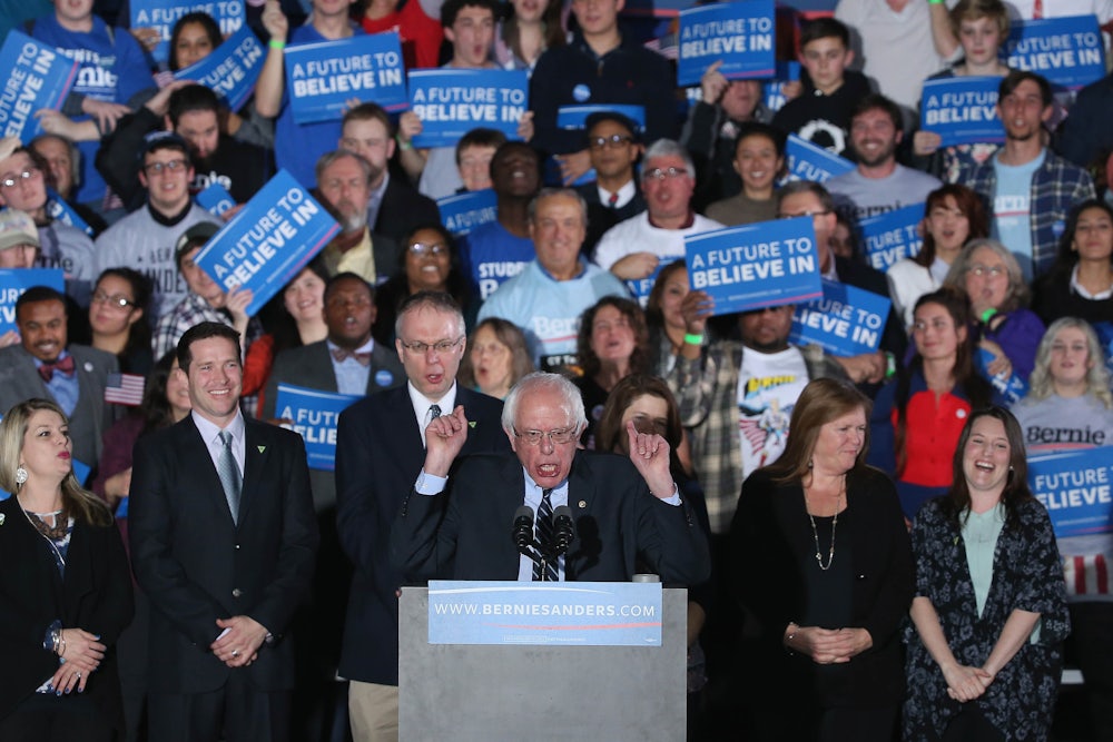 “First of all, congratulations to Bernie, in all fairness, we have to congratulate him. But I heard part of Bernie’s speech. He wants to give away our country, folks! We’re not gonna let it happen. ...We wish him a lot of luck, but we’re gonna make America great again, and we’re gonna do it the old-fashioned way.”