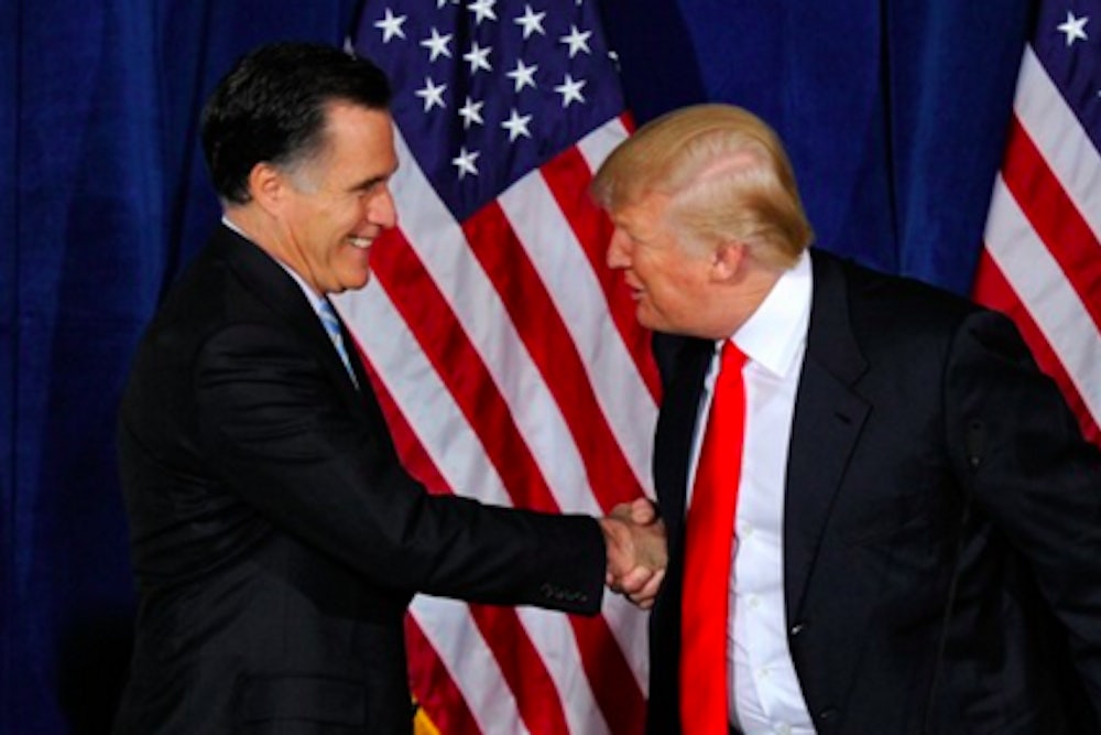 Romney and Trump have been exchanging barbs on Twitter since last week. But the incident is also telling. It takes only the most blatantly objectionable associations with the KKK for the Republican establishment to take Trump to task for racism. They didn’t mind when Romney sought Trump’s endorsement in 2012, after Trump emerged as the leading voice of the birther movement.