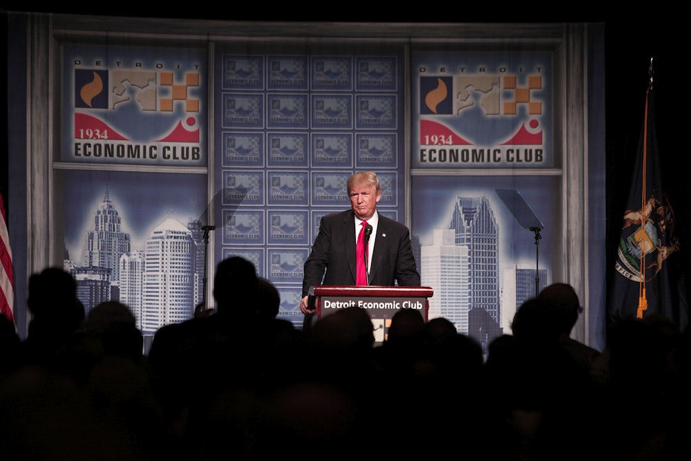 After perhaps the most damaging political week any presidential candidate has ever endured, Trump went to Detroit to deliver a hastily prepared economic speech intended to make peace with the Republican Party leadership.