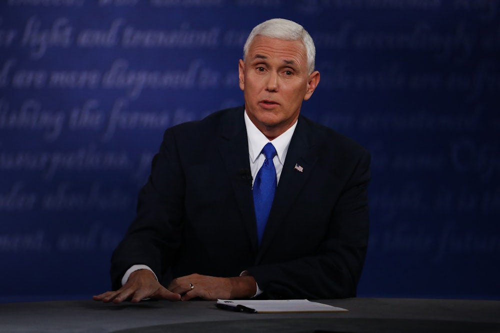 Pence tried to link himself and Donald Trump to Reagan all night. Earlier, he told the audience that their tax plan would get the American economy moving again, just as Ronald Reagan’s did in the 1980s. But whether the line was a premeditated attempt to frame himself as a silver-haired reincarnation of the 40th president or plain old unoriginality, it still fell flat, prompting only very tepid laughter from the crowd.