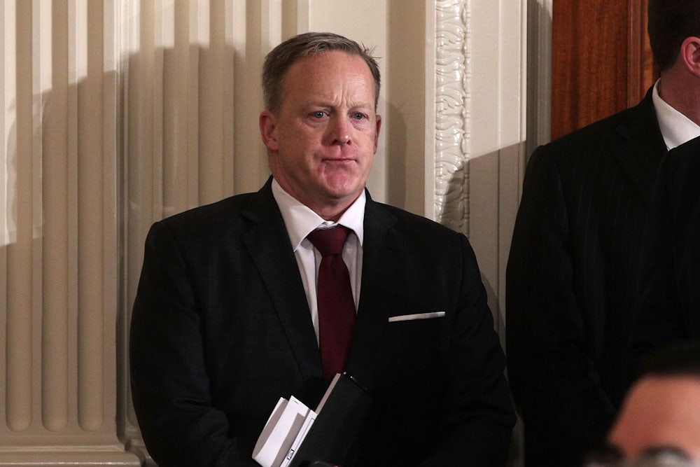 The press secretary just had a very bad weekend. In an attempt to find out who has been leaking stories to the press, Spicer made his staffers dump their phones out on a table for lawyers and him to look through—a move that was quickly leaked to the press. When asked about the incident this morning in an interview with the smitten hosts of Fox & Friends, Trump told them, “I would have handled it differently than Sean.” He asserted that he would have had “one-on-one” sessions with suspected leakers. At these sessions, he might have done things that were “a hell of a lot worse” than checking their phones. In what could be described as the worst performance review compliment sandwich ever, Trump did at least grudgingly admit that “Sean Spicer is a fine human being.” (Not true.)