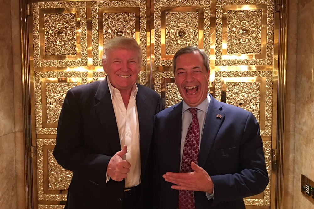 Farage, the low-rent British Trump and real-life Alan Partridge, spent his post-Brexit victory lap cozying up to Donald Trump and other faux American populists. Farage is a remarkably transparent opportunist, and he saw a branding opportunity to go from “smarmy guy drinking alone in a pub” to “figurehead of a worldwide populist movement.” He attended the RNC in July and appeared to be in regular contact with the Trump campaign. And shortly after his victory, Trump called for Prime Minister Theresa May to appoint Farage ambassador to the U.S.