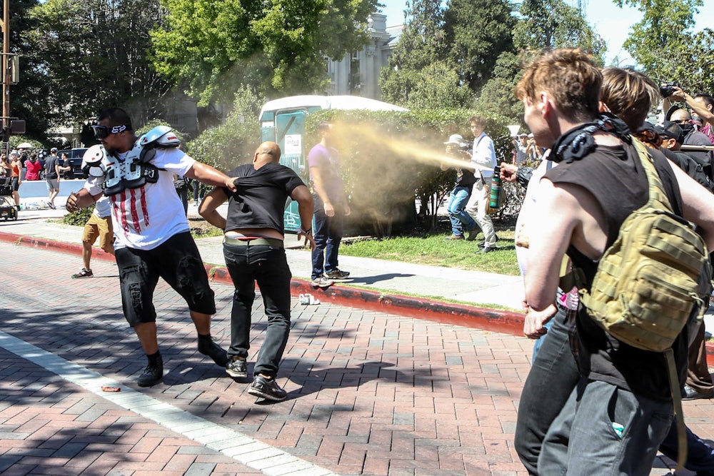 But it doesn’t actually matter that Gibson identifies as a person of color or that he permits a Samoan to speak at his rallies. Extremists attend his rallies because they agree with him and they feel comfortable with him. Let’s take another look at that speaking roster. The Samoan is Tusitala “Tiny” Toese, who punched a man half his size at a Portland rally in May. Kyle Chapman, better known as the white supremacist folk hero Based Stickman, is another. Instead of denigrating Berkeley, maybe Weiss should read what its student paper reported about Chapman: