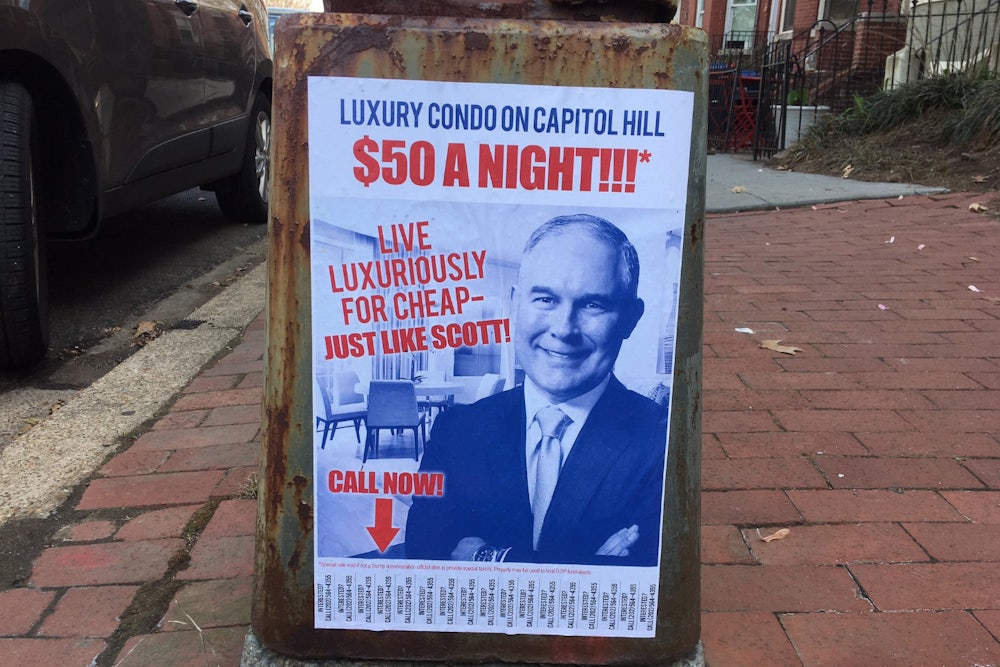 The Environmental Protection Agency chief’s cheap rental agreement with a top energy lobbyist’s wife may not have been only unethical, but illegal. On Friday, NBC 4 Washington reported that the owners of the building where Pruitt rented a room last year “didn’t have a basic business license to operate a single-family rental.”