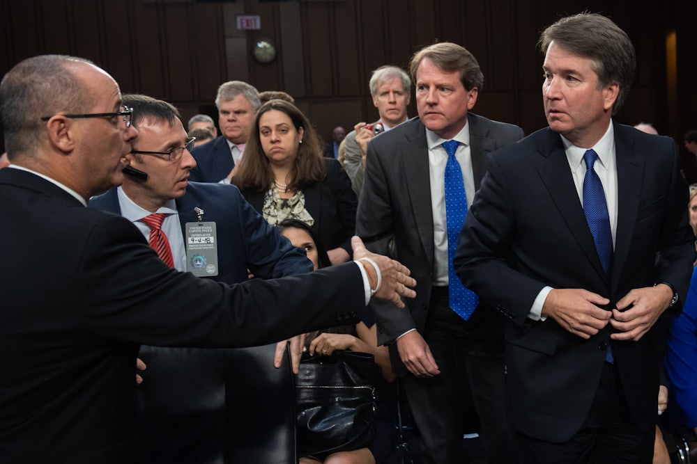 As Judge Kavanaugh left for his lunch break, an unidentified individual approached him. Before the Judge was able to shake his hand, security had intervened. https://t.co/ylOhtA1s6G
