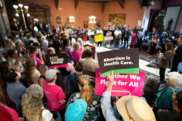 House Democrats had filed 1,000 amendments to try to block the measure from reaching a final vote, but it wasn’t enough. The self-named “sister senators” tried to filibuster the measure, but they too were defeated. All three Republican men who voted against the initial ban switched sides and voted for the six-week ban.